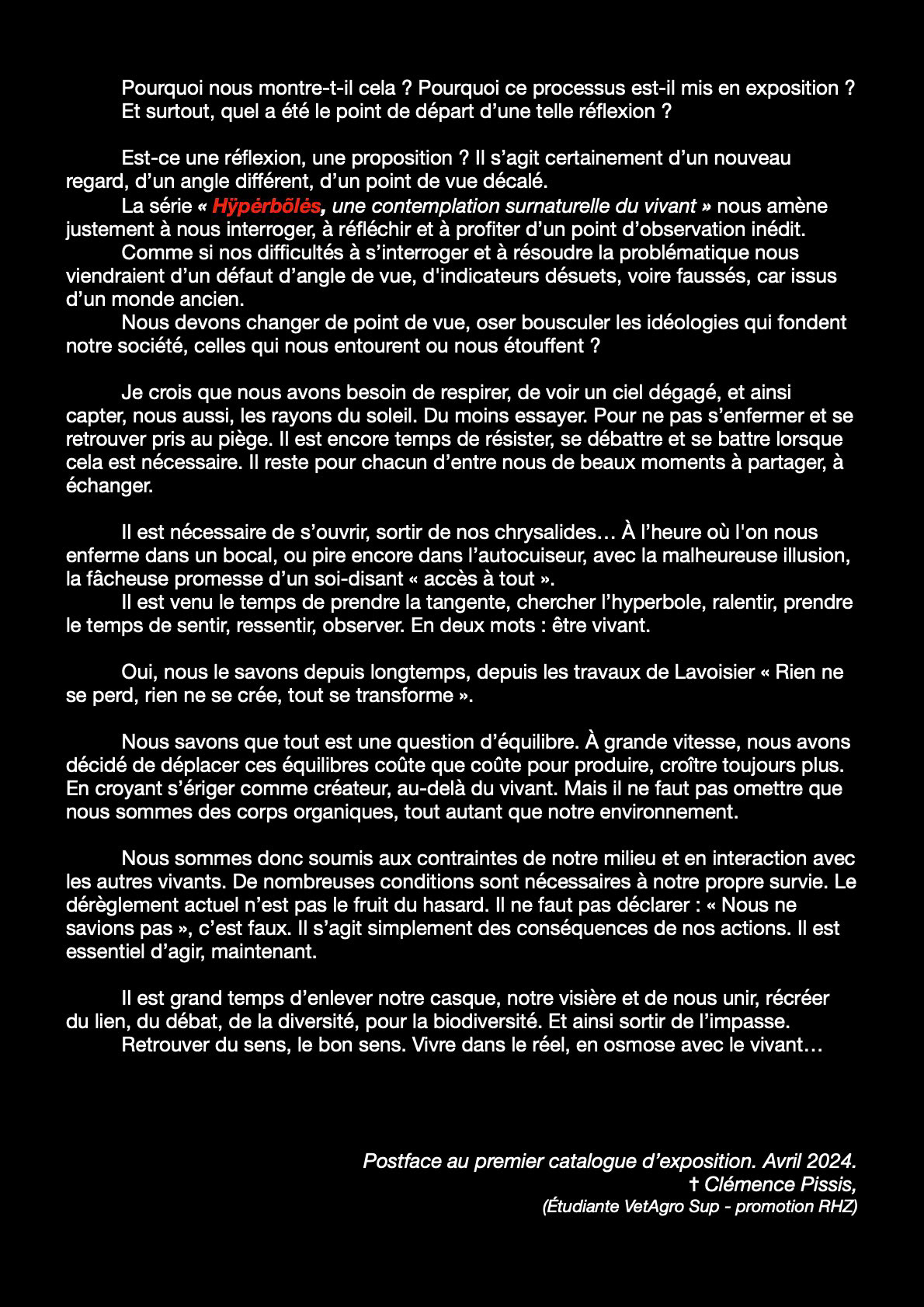 Postface au premier catalogue d'exposition